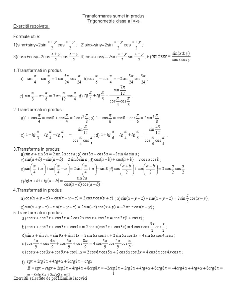 Transformarea Sumei In Produs
